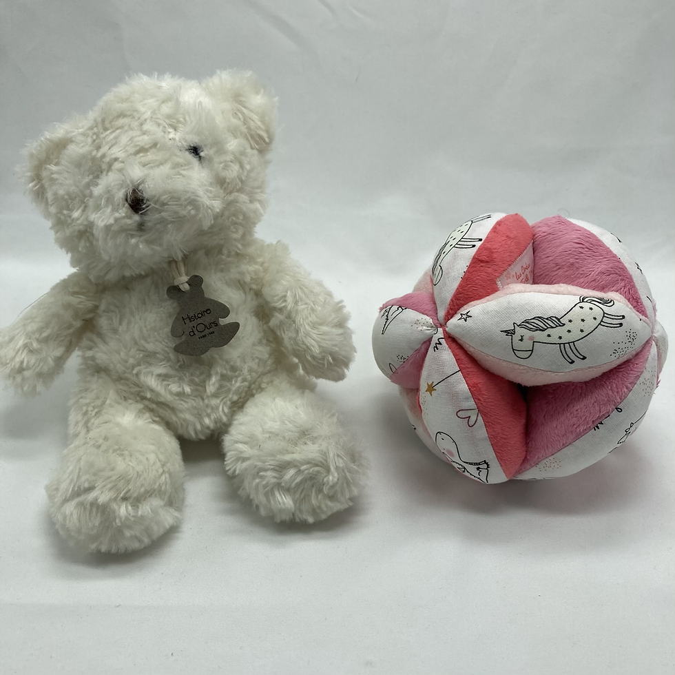 Un grand classique des balles de préhension qui est indémodable ! Il y a le modèle usuel avec un tissu à motif en extérieur et un tissu uni à l'intérieur... cela peut bien évidemment varier. j'aime bien garder le même tissu à motif en ayant 3 tissus de couleur ou texture différentes à l'intérieur pour renforcer l'éveil sensoriel. Mais après avoir testé une balle avec différents motifs en extérieur et un tissu uni tout doux au centre : je me dis que c'est très joli aussi !