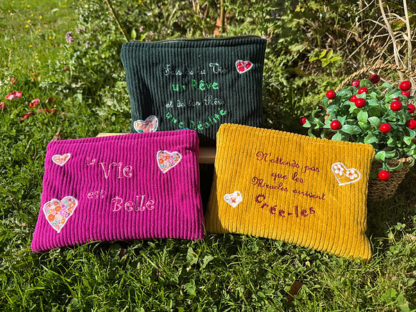 Tu as aussi la possibilité de co-créer la tienne de A à Z, des couleurs... à la citation que tu souhaites broder pour voyager avec un mot doux cher à ton coeur.